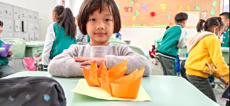 102班葉馨媛同學(xué)和她的作品《紙鶴船隊(duì)》,漂流的路上有陪伴才不會(huì)孤單