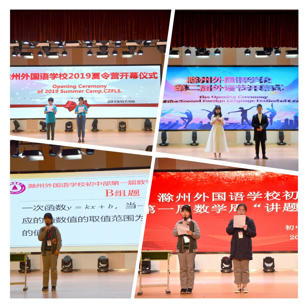 滁州外國(guó)語(yǔ)學(xué)校的校園活動(dòng)很多,第二課堂、社團(tuán)活動(dòng)、社會(huì)綜合實(shí)踐活動(dòng),以及富有學(xué)校特色的“六大節(jié)日”系列活動(dòng)等,大大小小的各種比賽也是每月甚至每周就舉行。主持、導(dǎo)演、排練節(jié)目......在很多比賽和活動(dòng)中都能看到我的身影。